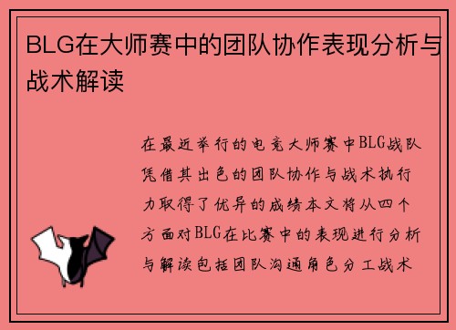 BLG在大师赛中的团队协作表现分析与战术解读