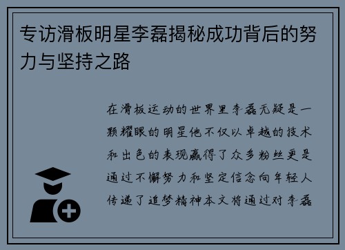 专访滑板明星李磊揭秘成功背后的努力与坚持之路