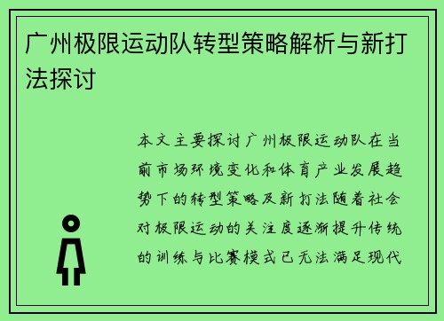 广州极限运动队转型策略解析与新打法探讨