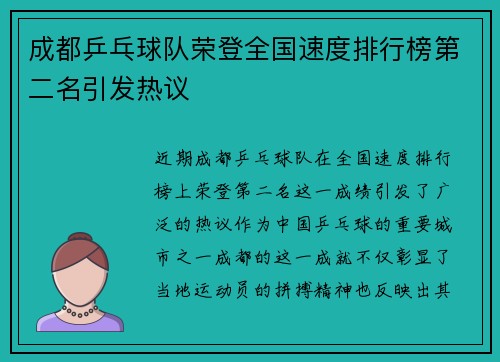 成都乒乓球队荣登全国速度排行榜第二名引发热议